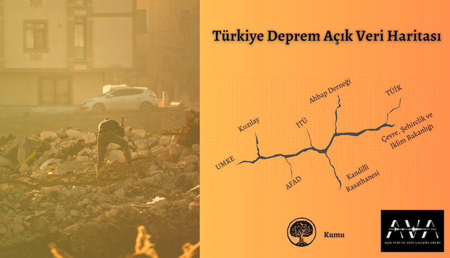 Bu kapsamda Açık Veri ve Teknoloji Derneğimiz bünyesinde oluşturduğumuz Açık Veri ve Afet Ekibi olarak sistem düşüncesi temelinde dinamik bir deprem açık veri ağ haritası oluşturduk. Bu harita ile Türkiye’de deprem, arama kurtarma verileri ve deprem çalışmalarında kullanılabilecek hali hazırdaki ilişkili her türlü veriyi, bu verilerin paylaşıldığı kurum ve kuruluşları, bu kurumların birbirleri ile ilişkilerini görünür kıldık.